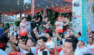 Sayang, perayaan juara Persija terganggu oleh merangseknya The Jakmania, suporter Persija, ke dalam lapangan usai penyerahan piala.