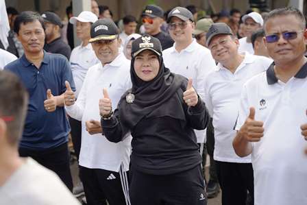 KRAKATOA.ID, JAKARTA — Wali Kota dan Wakil Wali Kota Bandar Lampung terpilih, Eva Dwiana dan Deddy Amarullah, mengikuti gladi bersih pelantikan di halaman Monumen Nasional (Monas), Gambir, Jakarta Pusat, pada Rabu (19/2/2025). Gladi bersih ini merupakan bagian dari rangkaian persiapan menjelang pelantikan Kepala Daerah hasil Pilkada 2024 yang dijadwalkan berlangsung pada Kamis, 20 Februari 2025.