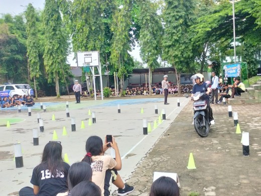 Acara selanjutnya secara penuh dipandu oleh Kanitkamsellantas Polres Pringsewu Ipda Silvia Purdiana, S.Keb, M.H. Pada kesempatan ini Kanitkamsellantas Polres Pringsewu menyampaikan bahwa tujuan dari kegiatan ini adalah untuk mengedukasi agar adik-adik SMA Xaverius Pringsewu paham tentang cara berlalu lintas sehingga dapat memberikan keselamatan untuk diri mereka sendiri.