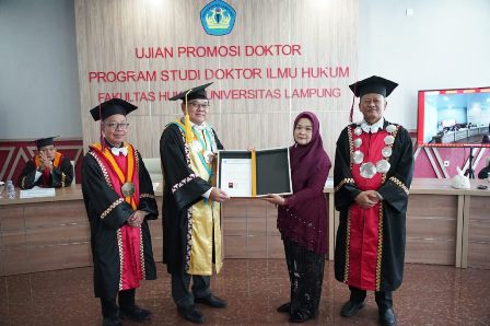 KRAKATOA.ID, BANDARLAMPUNG — Fakultas Hukum (FH) Universitas Lampung (Unila) menyelenggarakan ujian terbuka promosi doktor ilmu hukum pada Senin, 24 Februari 2025, yang berlangsung di Gedung Fakultas Hukum, lantai dua ruang satu. Pada ujian ini, Kasmawati, S.H., M.Hum., mempresentasikan disertasinya berjudul “Model Bahan Usaha (BUMDes) Milik Desa Berbadan Hukum dalam Perspektif Hukum Perusahaan untuk Meningkatkan Kesejahteraan Masyarakat Desa.”