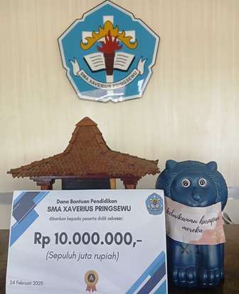 Bantuan tersebut berasal dari dana pendidikan. Dana pendidikan ini dikumpulkan dari tabungan koin yang juga berasal dari para siswa SMA Xaverius Pringsewu. Tabungan koin ini dikumpulkan secara sukarela di setiap kelas.