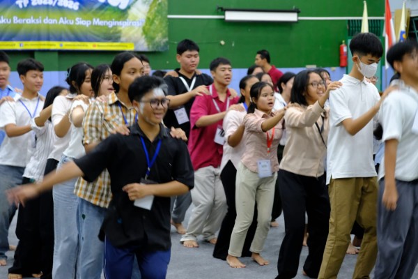 KRAKATOA.ID, BANDARLAMPUNG — Pembukaan kegiatan Weekend SMA Xaverius Bandar Lampung dimulai pada Jumat, 8 Agustus 2025. Kegiatan tersebut dibuka dengan menyanyikan lagu Indonesia Raya dan Mars Xaverius. Siswa-siswi berbaris rapi mengenakan seragam pramuka. Meskipun terlihat lelah setelah pulang sekolah, wajah-wajah mereka langsung ceria saat tim gerak dan lagu memecah keheningan dengan berjoget bersama. Suasana semakin antusias ketika peserta mulai bergabung dengan kelompok yang telah dibagi secara acak. Peserta diminta mencari kelompoknya berdasarkan nametag yang telah bertuliskan angka. Mereka diberikan waktu untuk berkumpul, dan semangat yang menyala memenuhi aula. Semua peserta berlomba untuk masuk ke dalam kelompoknya tepat waktu.