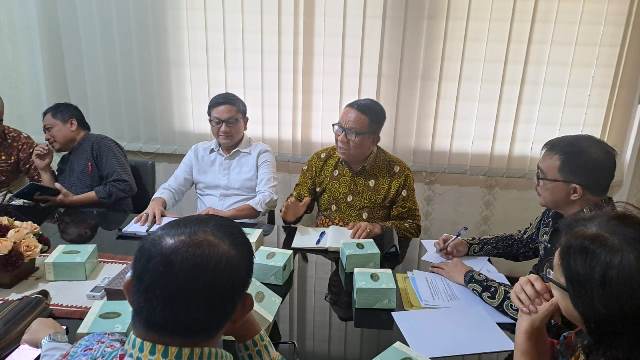 Dr. Gusnom saat memimpin rapat dengan Forum Corporate Social Responsibility (CSR) Lampung.