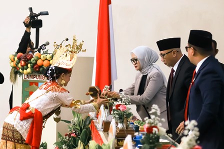 ALTUMNEWS.Com, BANDAR LAMPUNG — Gubernur Lampung Rahmat Mirzani Djausal dan Wakil Gubernur Jihan Nurlela menghadiri Sidang Paripurna DPRD Provinsi Lampung dalam rangka memperingati Hari Ulang Tahun (HUT) ke-80 Kemerdekaan Republik Indonesia, yang digelar di Ruang Sidang Paripurna DPRD Provinsi Lampung, Jumat (15/8/2025).
