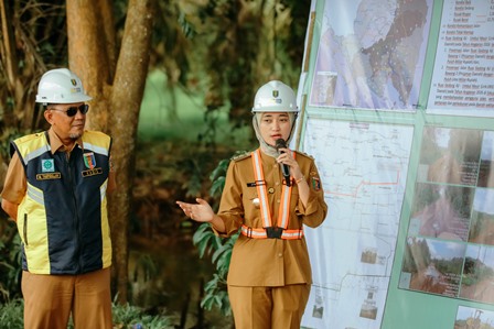 Wakil Gubernur Lampung Jihan Nurlela memimpin groundbreaking jalan 13 km dengan konstruksi rigid beton, Senin (6/4/2026). Kepala desa, pemerintah daerah, dan warga hadir menyaksikan acara.